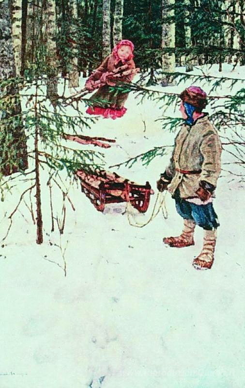 Ti offriamo una riproduzione artigianale su tela dell'opera famosa 'Inverno' di Nikolay Bogdanov-Belsky, dal Museo delle Riproduzioni.