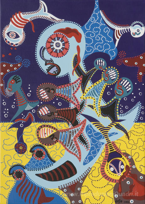 Ti offriamo una riproduzione artigianale su tela dell'opera famosa 'Irrawaddy Dolfins' di Mr. Dejo, dal Museo delle Riproduzioni.