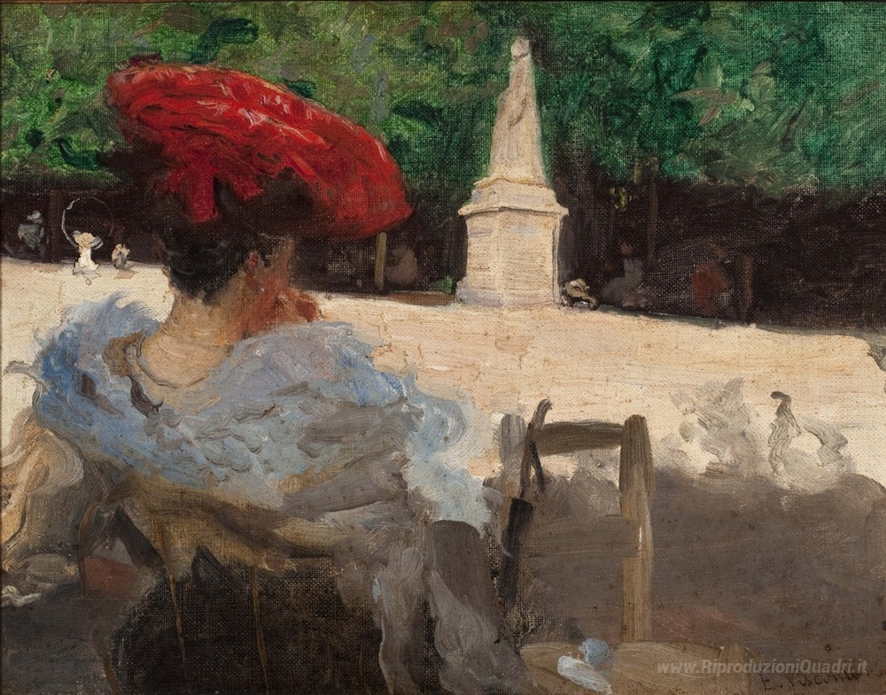 Ti offriamo una riproduzione artigianale su tela dell'opera famosa 'Jardim de Luxemburgo' di Eliseu Visconti, dal Museo delle Riproduzioni.
