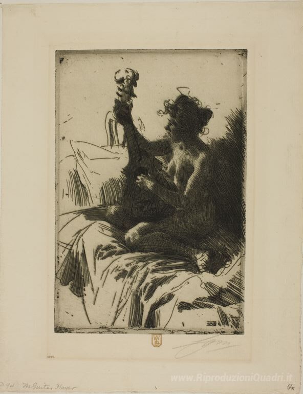 Ti offriamo una riproduzione artigianale su tela dell'opera famosa 'La chitarra' di Anders Zorn, dal Museo delle Riproduzioni.