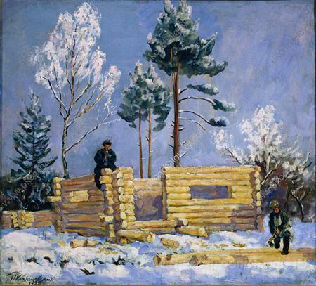 Ti offriamo una riproduzione artigianale su tela dell'opera famosa 'La costruzione di stabilimento balneare' di Pyotr Konchalovsky, dal Museo delle Riproduzioni.