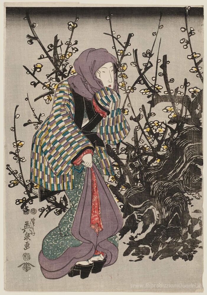Ti offriamo una riproduzione artigianale su tela dell'opera famosa 'La donna da Plum Tree at Night' di Keisai Eisen, dal Museo delle Riproduzioni.
