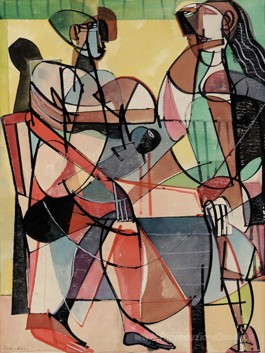 Ti offriamo una riproduzione artigianale su tela dell'opera famosa 'La famiglia' di Romare Bearden, dal Museo delle Riproduzioni.