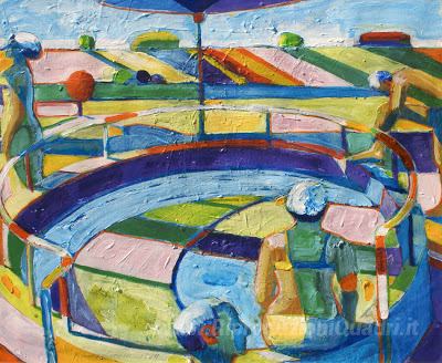 Ti offriamo una riproduzione artigianale su tela dell'opera famosa 'La Jacuzzi' di Roland Petersen, dal Museo delle Riproduzioni.