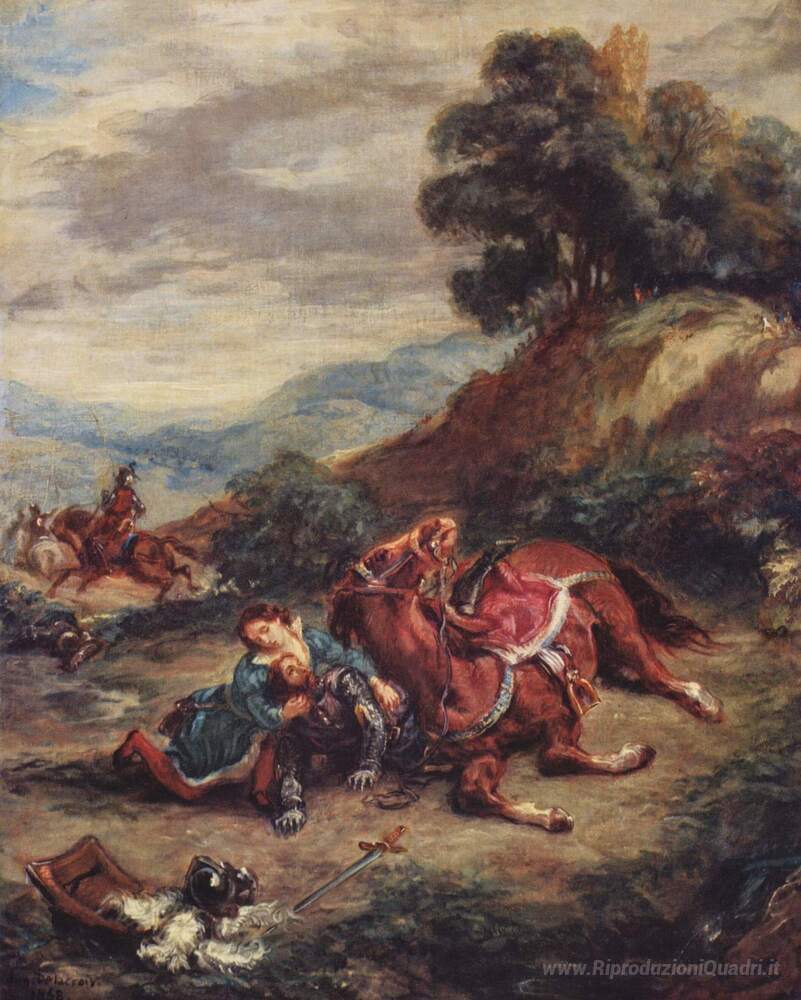 Benvenuti nella nostra selezione esclusiva di dipinti a olio, dove l'arte incontra l'eleganza. Oggi vi presentiamo La morte di Laras, un capolavoro dell'illustre artista Eugène Delacroix, maestro dell'arte romantica francese. La sua straordinaria capacità di esprimere emozioni intense e drammatiche attraverso il colore e la luce ha reso questo dipinto un simbolo di passione e profondità narrativa.