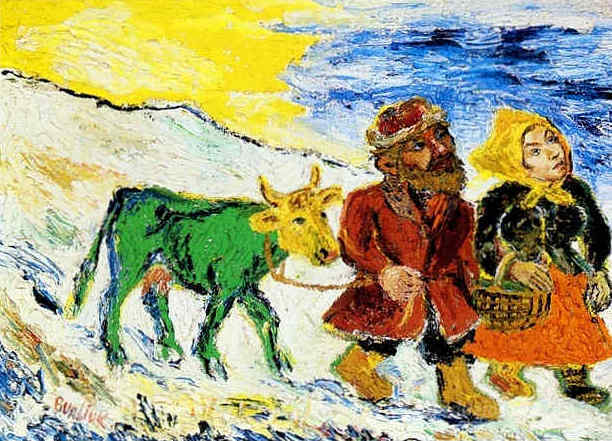 Ti offriamo una riproduzione artigianale su tela dell'opera famosa 'La mucca verde' di David Burliuk, dal Museo delle Riproduzioni.