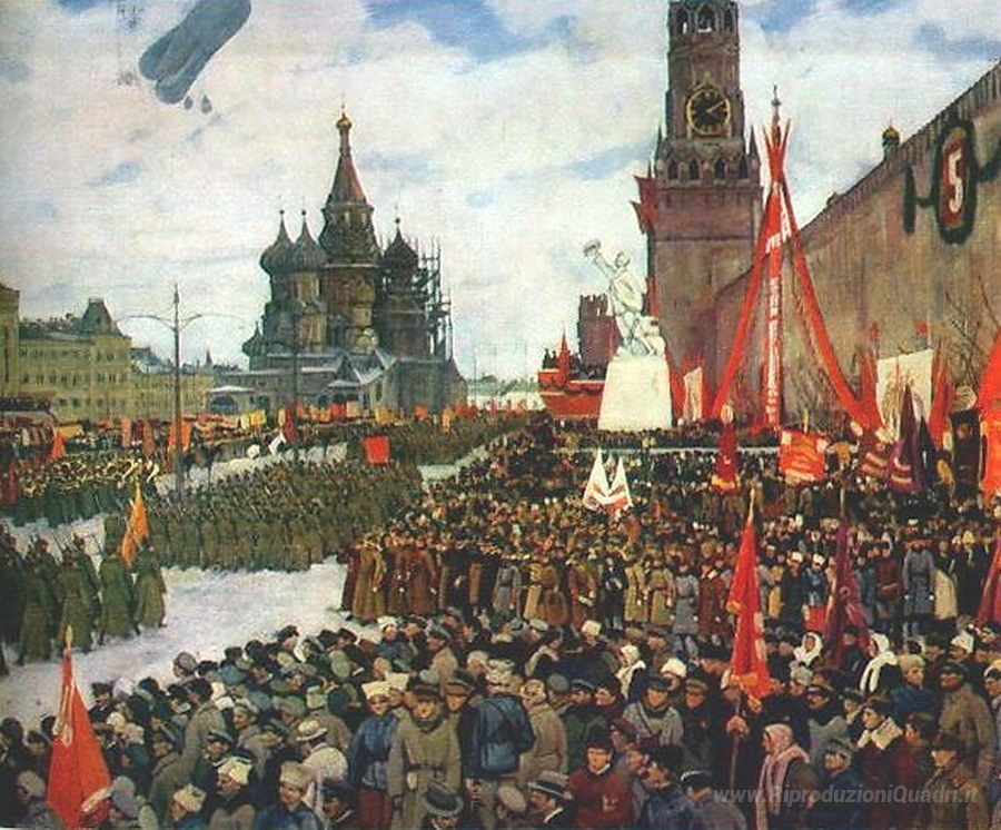 Ti offriamo una riproduzione artigianale su tela dell'opera famosa 'La parata Armata Rossa' di Konstantin Yuon, dal Museo delle Riproduzioni.