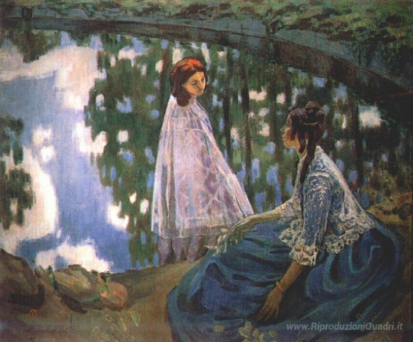 Ti offriamo una riproduzione artigianale su tela dell'opera famosa 'La piscina' di Victor Borisov-Musatov, dal Museo delle Riproduzioni.