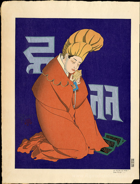 Ti offriamo una riproduzione artigianale su tela dell'opera famosa 'La Prière de Minuit. Lama, Mongol' di Paul Jacoulet, dal Museo delle Riproduzioni.
