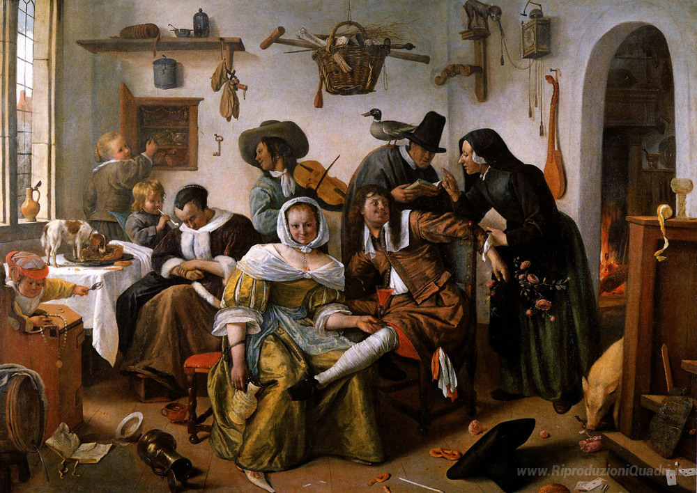 Ti offriamo una riproduzione artigianale su tela dell'opera famosa 'La ricchezza è alla ricerca' di Jan Steen, dal Museo delle Riproduzioni.