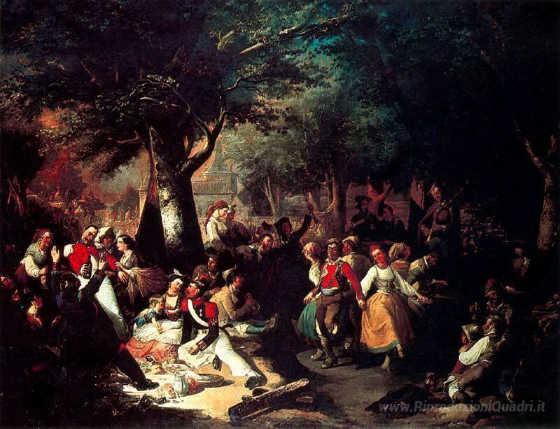 Ti offriamo una riproduzione artigianale su tela dell'opera famosa 'La Romería de la Virgen del Puerto' di Manuel Rodriguez de Guzman, dal Museo delle Riproduzioni.