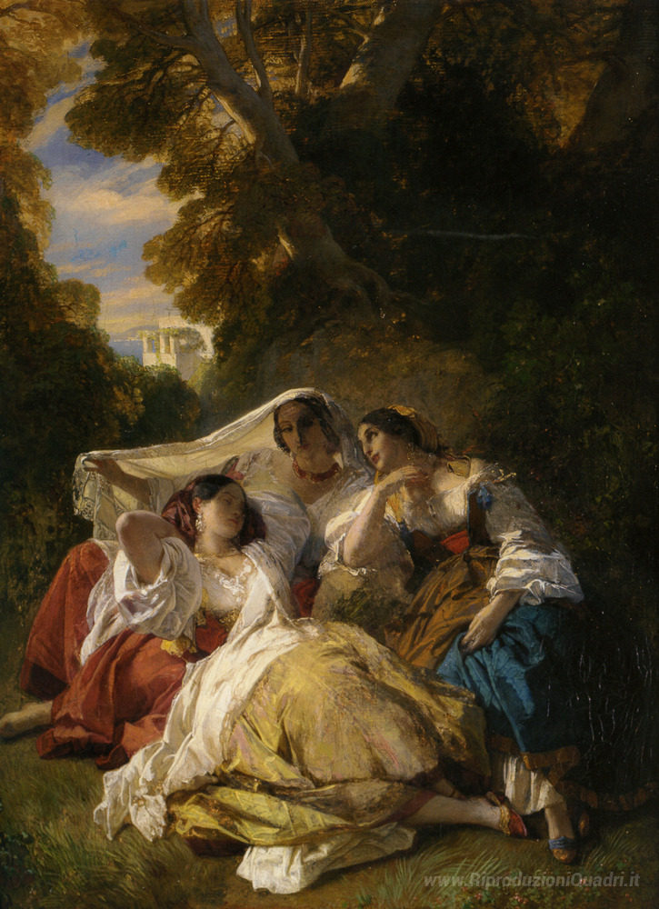 Ti offriamo una riproduzione artigianale su tela dell'opera famosa 'La Siesta' di Franz Xaver Winterhalter, dal Museo delle Riproduzioni.