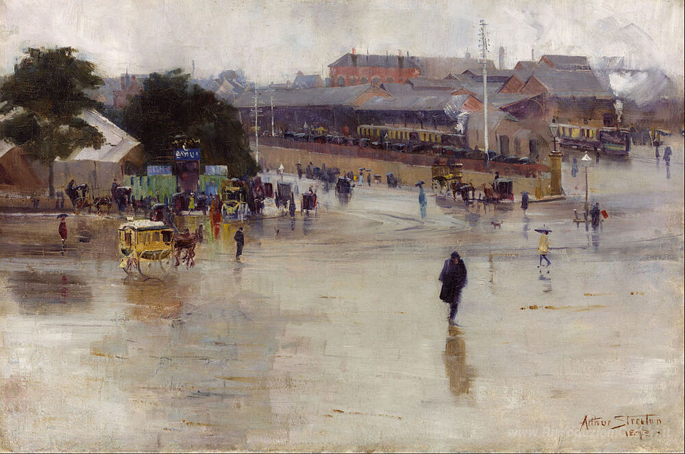 Ti offriamo una riproduzione artigianale su tela dell'opera famosa 'La stazione ferroviaria, Redfern' di Arthur Streeton, dal Museo delle Riproduzioni.