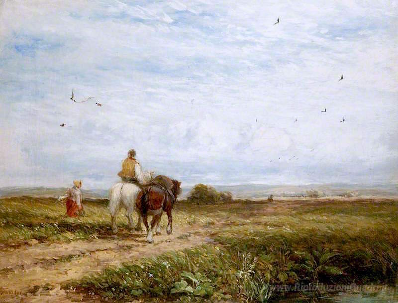 Ti offriamo una riproduzione artigianale su tela dell'opera famosa 'La strada verso il Hayfield' di David Cox, dal Museo delle Riproduzioni.