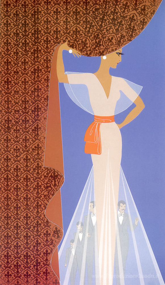 Ti offriamo una riproduzione artigianale su tela dell'opera famosa 'La tenda' di Erte, dal Museo delle Riproduzioni.