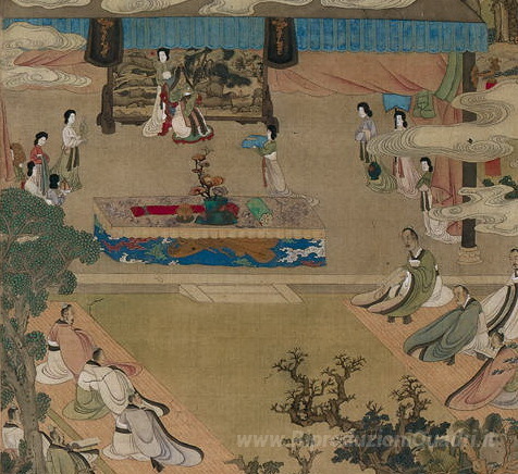 Ti offriamo una riproduzione artigianale su tela dell'opera famosa 'Lady Xuanwen Giugno dare istruzioni sui Classics (particolare)' di Chen Hongshou, dal Museo delle Riproduzioni.