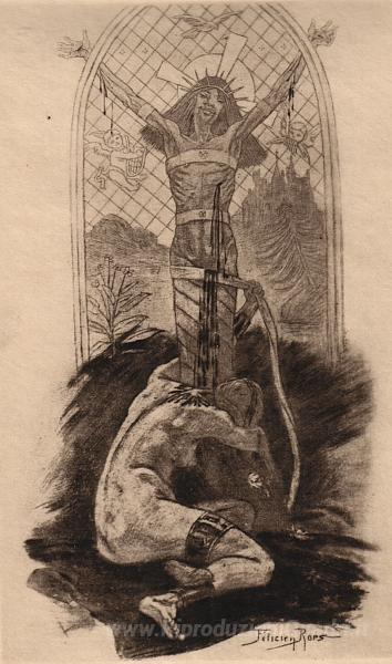 Ti offriamo una riproduzione artigianale su tela dell'opera famosa 'L'amante di Cristo' di Felicien Rops, dal Museo delle Riproduzioni.
