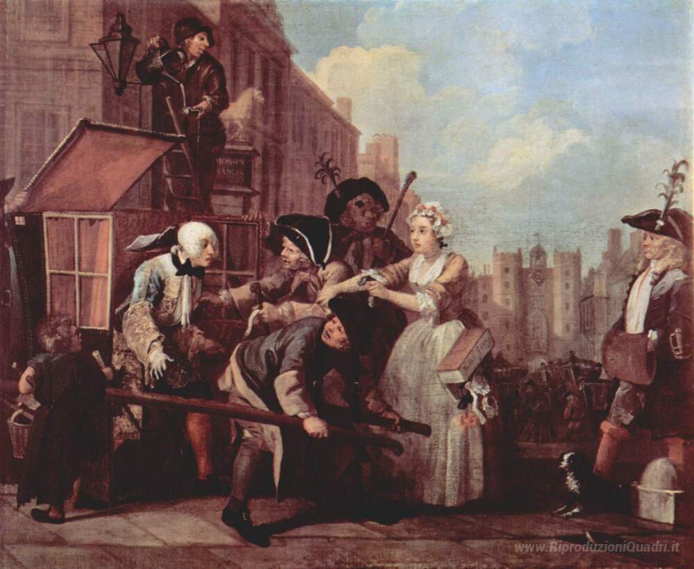 Ti offriamo una riproduzione artigianale su tela dell'opera famosa 'L'arresto per furto' di William Hogarth, dal Museo delle Riproduzioni.