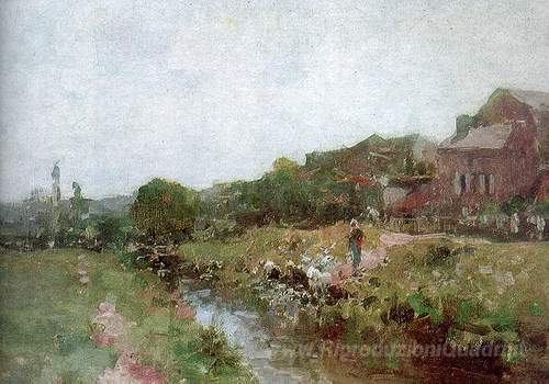 Il dipinto Laundrywoman in Bretagna dell'artista rumeno Nicolae Grigorescu cattura con straordinaria maestria la quotidianità della vita rurale. Grigorescu, una figura di spicco del realismo e un pioniere dell'arte moderna in Romania, utilizza pennellate delicate e colori vibranti per esprimere l'autenticità e la semplicità della scena, trasportando l'osservatore in un'atmosfera di serenità e introspezione.