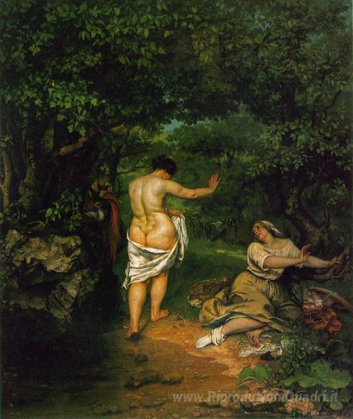 Ti offriamo una riproduzione artigianale su tela dell'opera famosa 'Le bagnanti' di Gustave Courbet, dal Museo delle Riproduzioni.