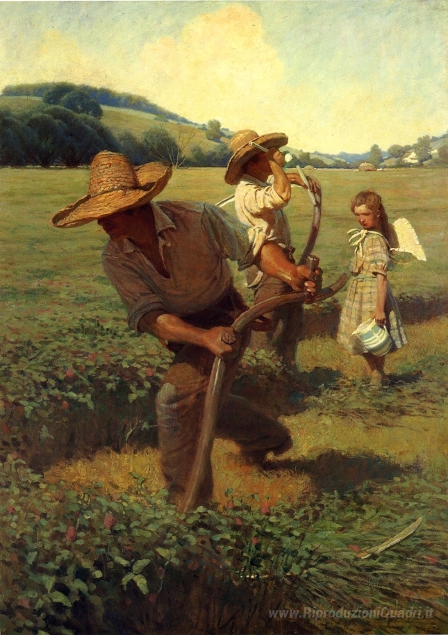 Ti offriamo una riproduzione artigianale su tela dell'opera famosa 'Le Scythers' di N.C. Wyeth, dal Museo delle Riproduzioni.