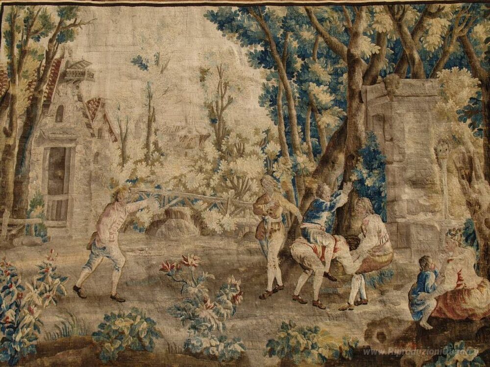 Ti offriamo una riproduzione artigianale su tela dell'opera famosa 'Les Divertimenti Champêtres: Le cheval fondu (Tapestry)' di Jean-Baptiste Oudry, dal Museo delle Riproduzioni.