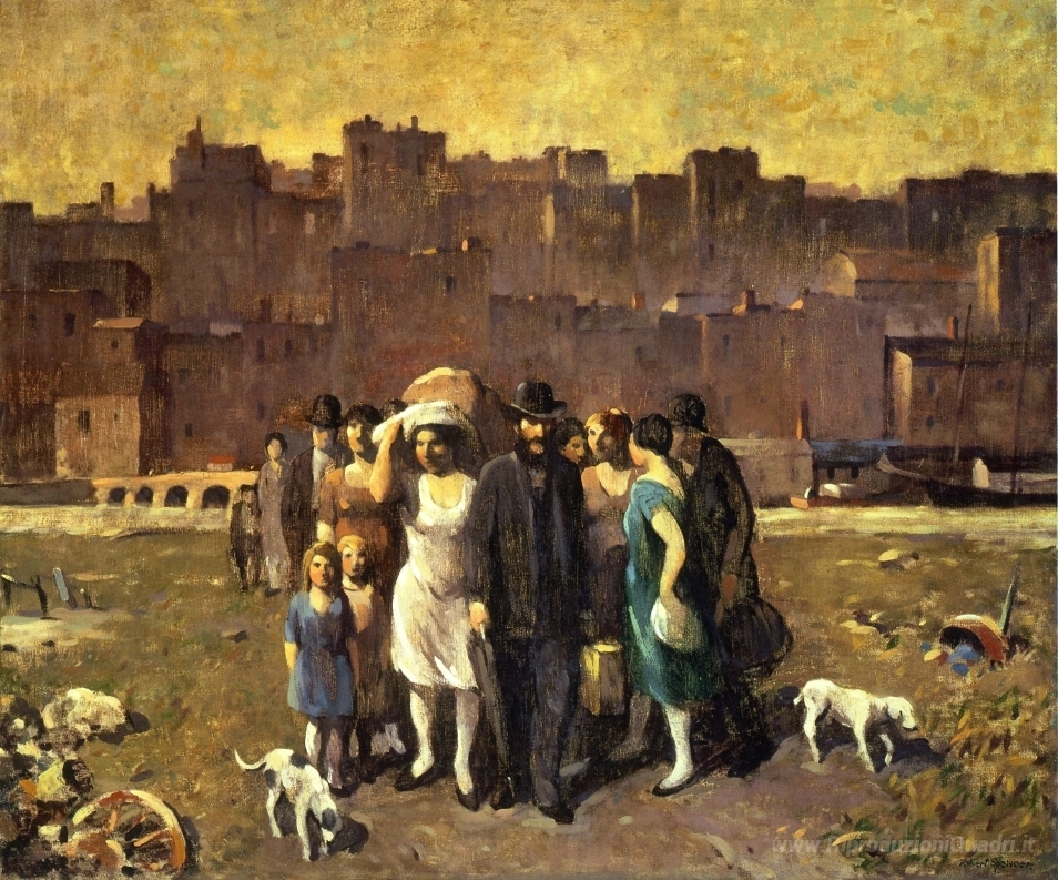 Ti offriamo una riproduzione artigianale su tela dell'opera famosa 'L'Esodo' di Robert Spencer, dal Museo delle Riproduzioni.