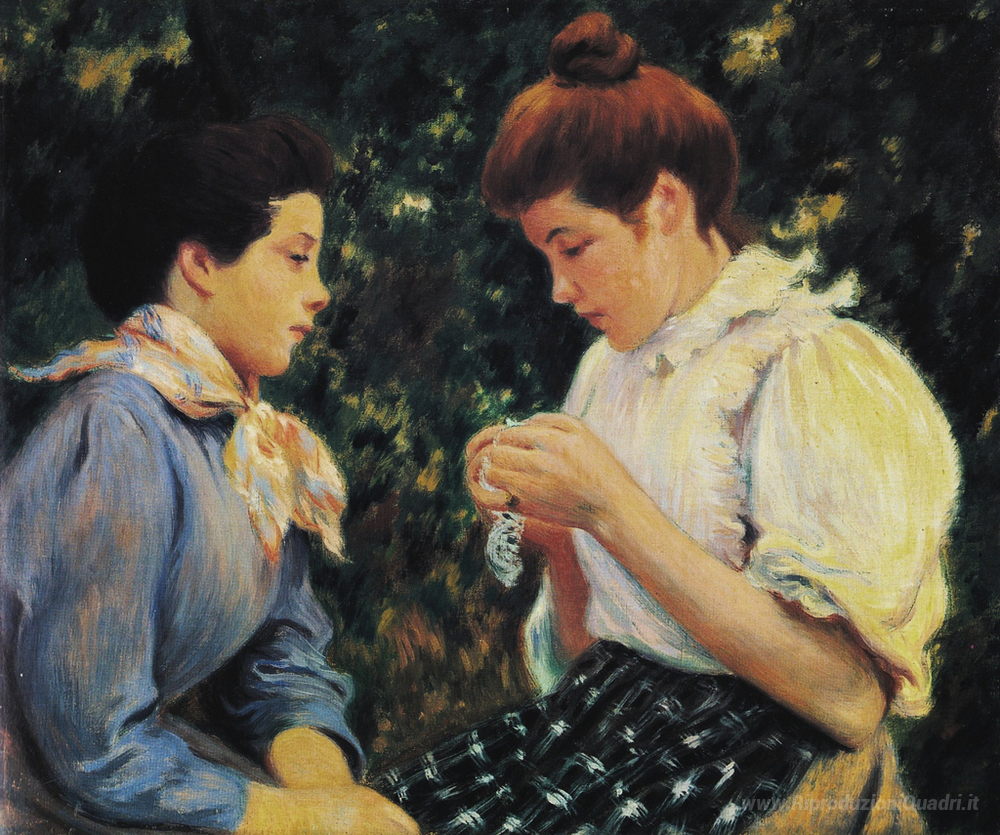 Ti offriamo una riproduzione artigianale su tela dell'opera famosa 'Lezione Crochet' di Federico Zandomeneghi, dal Museo delle Riproduzioni.