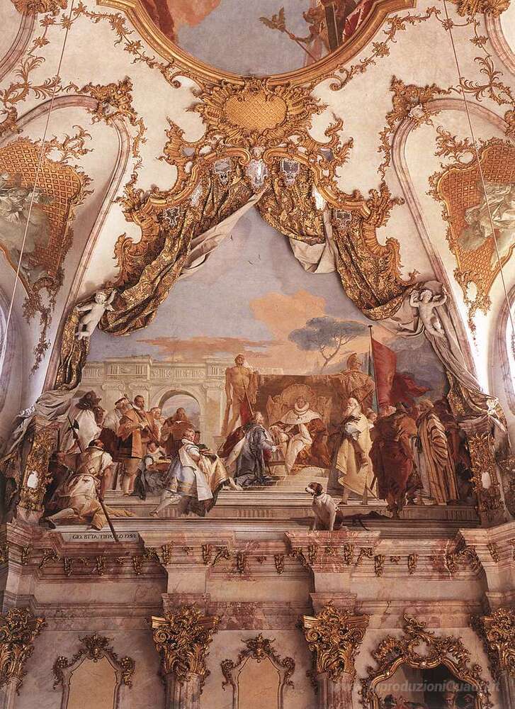 Ti offriamo una riproduzione artigianale su tela dell'opera famosa 'L'investitura di Herold come Duca di Franconia' di Giovanni Battista Tiepolo, dal Museo delle Riproduzioni.