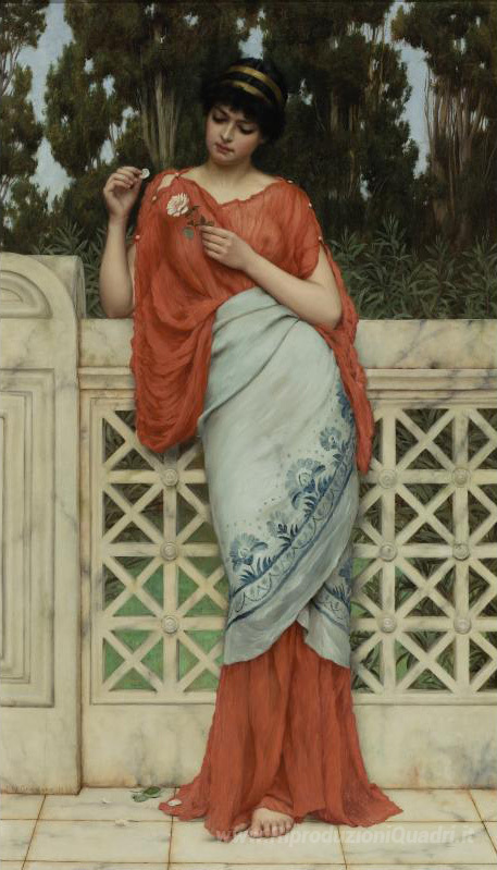 Ti offriamo una riproduzione artigianale su tela dell'opera famosa 'Lo ama, lui lo ama non' di John William Godward, dal Museo delle Riproduzioni.