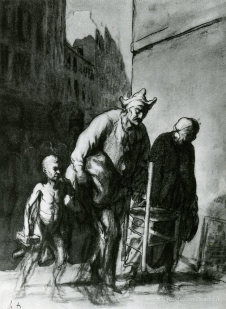 Ti offriamo una riproduzione artigianale su tela dell'opera famosa 'Lo spostamento degli Acrobati Travelling' di Honore Daumier, dal Museo delle Riproduzioni.