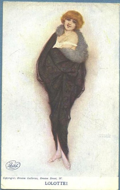 Ti offriamo una riproduzione artigianale su tela dell'opera famosa 'Lollotte' di Raphael Kirchner, dal Museo delle Riproduzioni.