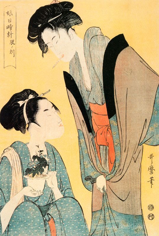 Ti offriamo una riproduzione artigianale su tela dell'opera famosa 'L'ora della lepre' di Kitagawa Utamaro, dal Museo delle Riproduzioni.