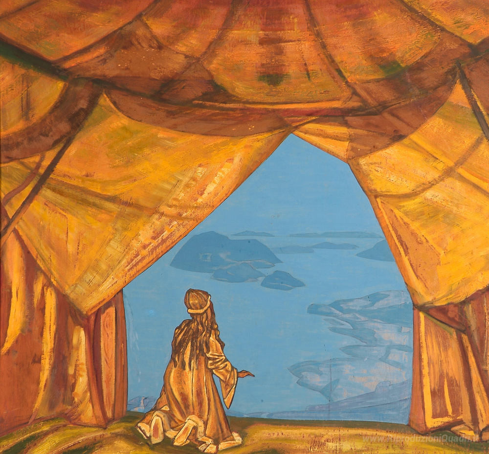 Ti offriamo una riproduzione artigianale su tela dell'opera famosa 'Lord of the Night' di Nicholas Roerich, dal Museo delle Riproduzioni.