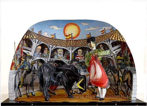 Ti offriamo una riproduzione artigianale su tela dell'opera famosa 'Los aficianados' di Red Grooms, dal Museo delle Riproduzioni.