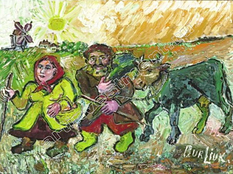 Ti offriamo una riproduzione artigianale su tela dell'opera famosa 'L'ultima mucca' di David Burliuk, dal Museo delle Riproduzioni.