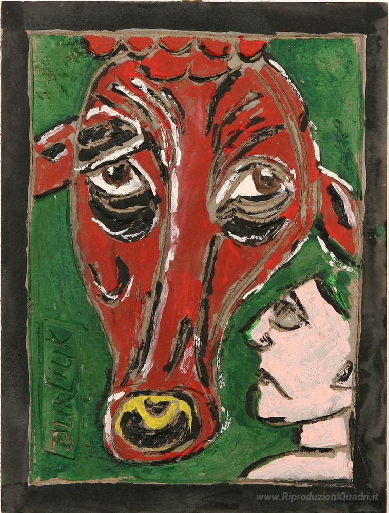 Ogni dipinto di Burliuk è un viaggio emozionale, una riflessione sulla simbiosi tra uomo e natura. Ne L'uomo e mucca, la composizione audace e l'uso sapiente della luce trasmettono un'energia palpabile, esaltando l'atmosfera degli spazi in cui è esposto. Questo pezzo non solo arredarà il tuo ambiente, ma racconterà una storia, elevando l'energia della tua casa con un tocco di eleganza e originalità.