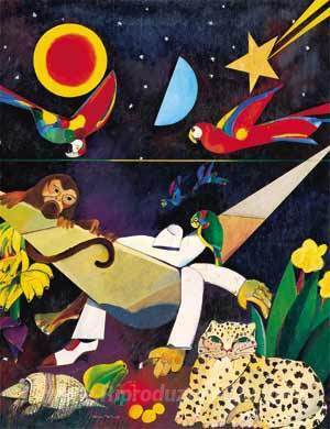 Ti offriamo una riproduzione artigianale su tela dell'opera famosa 'Macunaíma' di Aldemir Martins, dal Museo delle Riproduzioni.