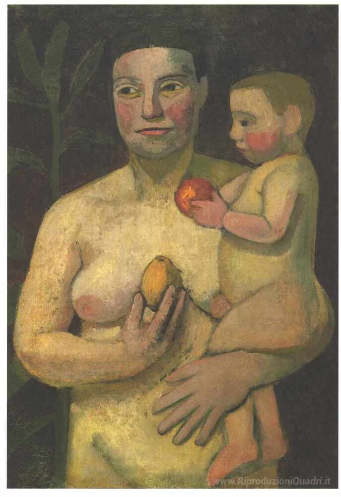 Ti offriamo una riproduzione artigianale su tela dell'opera famosa 'Madre e figlio' di Paula Modersohn-Becker, dal Museo delle Riproduzioni.