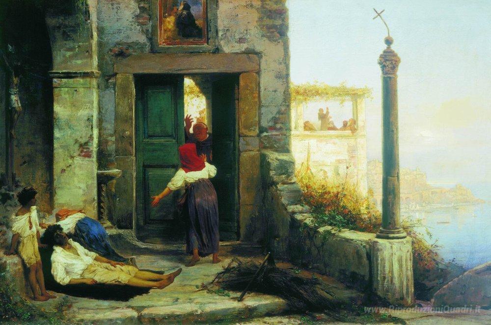 Ti offriamo una riproduzione artigianale su tela dell'opera famosa 'Malato le mura di un monastero cattolico' di Fyodor Bronnikov, dal Museo delle Riproduzioni.