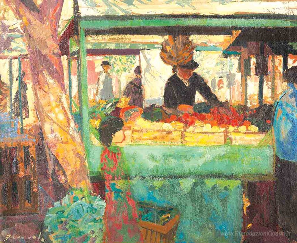 Ti offriamo una riproduzione artigianale su tela dell'opera famosa 'Marché' di Emilio Grau Sala, dal Museo delle Riproduzioni.