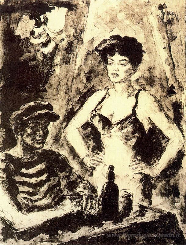 Ti offriamo una riproduzione artigianale su tela dell'opera famosa 'Marinaio con donna' di Arturo Souto, dal Museo delle Riproduzioni.