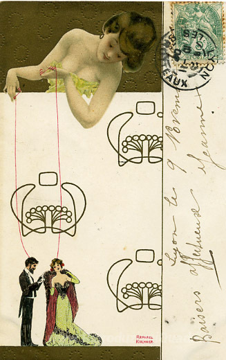Ti offriamo una riproduzione artigianale su tela dell'opera famosa 'Marionette' di Raphael Kirchner, dal Museo delle Riproduzioni.
