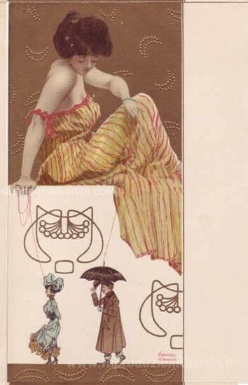 Ti offriamo una riproduzione artigianale su tela dell'opera famosa 'Marionette' di Raphael Kirchner, dal Museo delle Riproduzioni.
