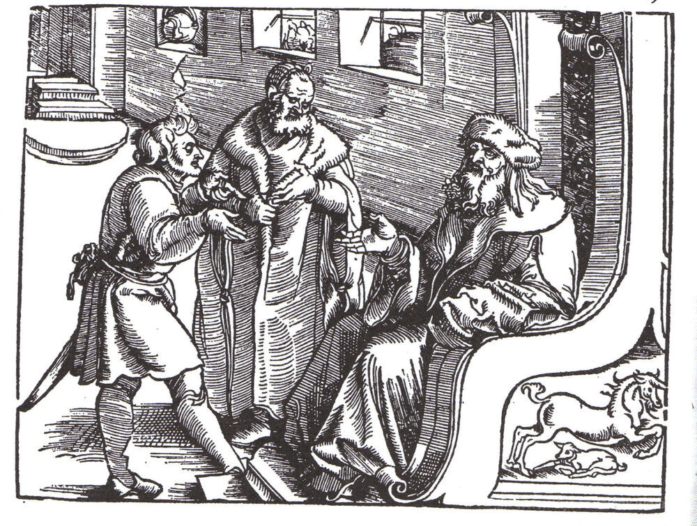 Ti offriamo una riproduzione artigianale su tela dell'opera famosa 'Marquard von Lindau chiedere e rispondere alle dieci comandament' di Hans Baldung, dal Museo delle Riproduzioni.