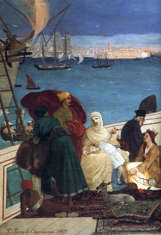 Ti offriamo una riproduzione artigianale su tela dell'opera famosa 'Marsiglia, Porta d'Oriente (particolare)' di Pierre Puvis de Chavannes, dal Museo delle Riproduzioni.