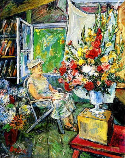 Ti offriamo una riproduzione artigianale su tela dell'opera famosa 'Marusia nella Biblioteca' di David Burliuk, dal Museo delle Riproduzioni.