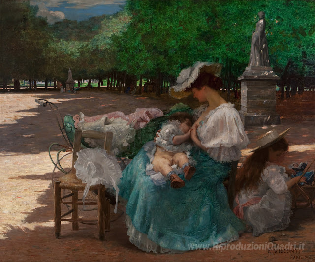 Ti offriamo una riproduzione artigianale su tela dell'opera famosa 'Maternidade' di Eliseu Visconti, dal Museo delle Riproduzioni.