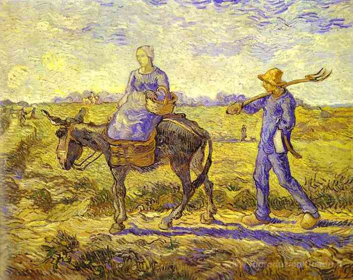 Ti offriamo una riproduzione artigianale su tela dell'opera famosa 'Mattina, andare a lavorare' di Vincent van Gogh, dal Museo delle Riproduzioni.