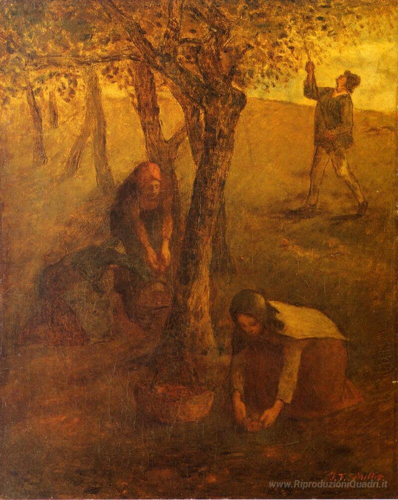 Ti offriamo una riproduzione artigianale su tela dell'opera famosa 'Mele Gathering' di Jean-Francois Millet, dal Museo delle Riproduzioni.